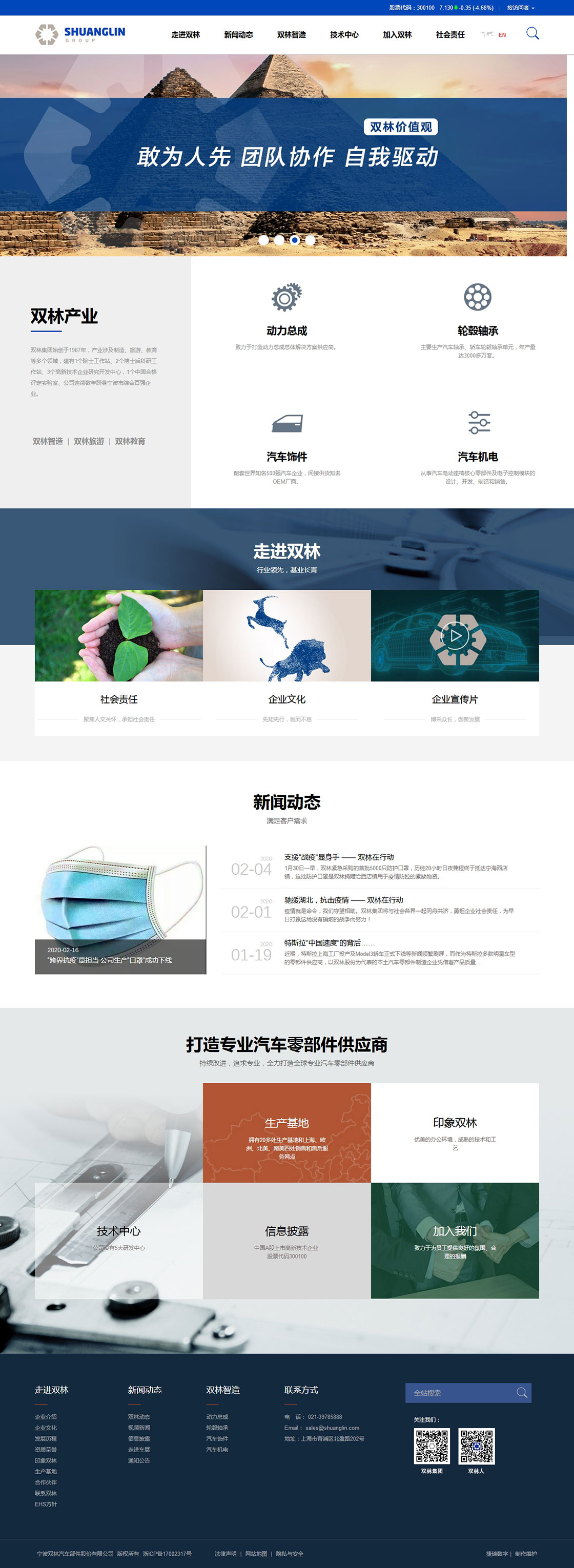 双林集团,始创于1987年,产业包括汽车部件智造、旅游休闲、教育等板块。截止2018年底总资产近100亿人民币,销售额近70亿人民币。旗下拥有40多家分(子)公司和两个省级博士后科研工作站、三个省级高新技术企业研究开发中心、一个人才培养基地,并建有一个国家认可实验室。宁波双林汽车部件股份有限公司是双林集团控股子公司,系中国A股上市高新技术企业(代码300100)。