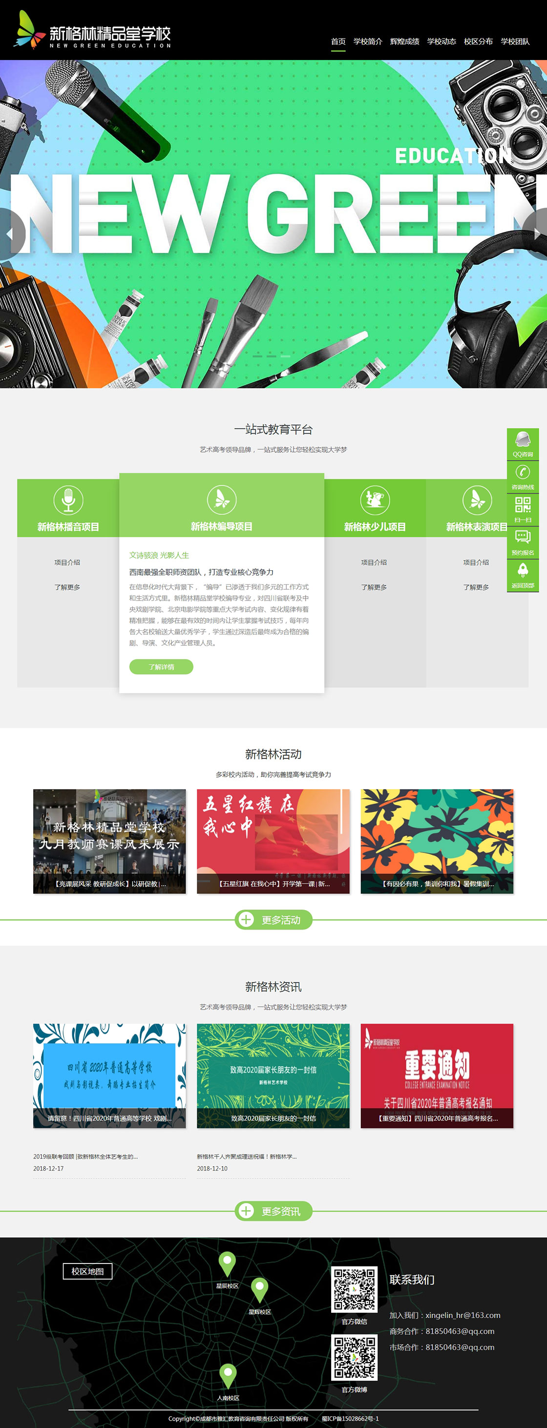 新格林精品堂学校是雅汇教育旗下专注艺术教育的优质艺术学校,创办于2005年,经过多年发展,新格林在成都市设置了星辰和人南两个校区,办学面积达7000余平方,并在宜宾、自贡、巴中、乐山、阆中等二级城市设置了多个教学点。2019年,雅汇教育投资6000万元,在绵阳打造艺考卓越品牌——新格林优学堂,将优质的艺术教育带到了绵阳。
